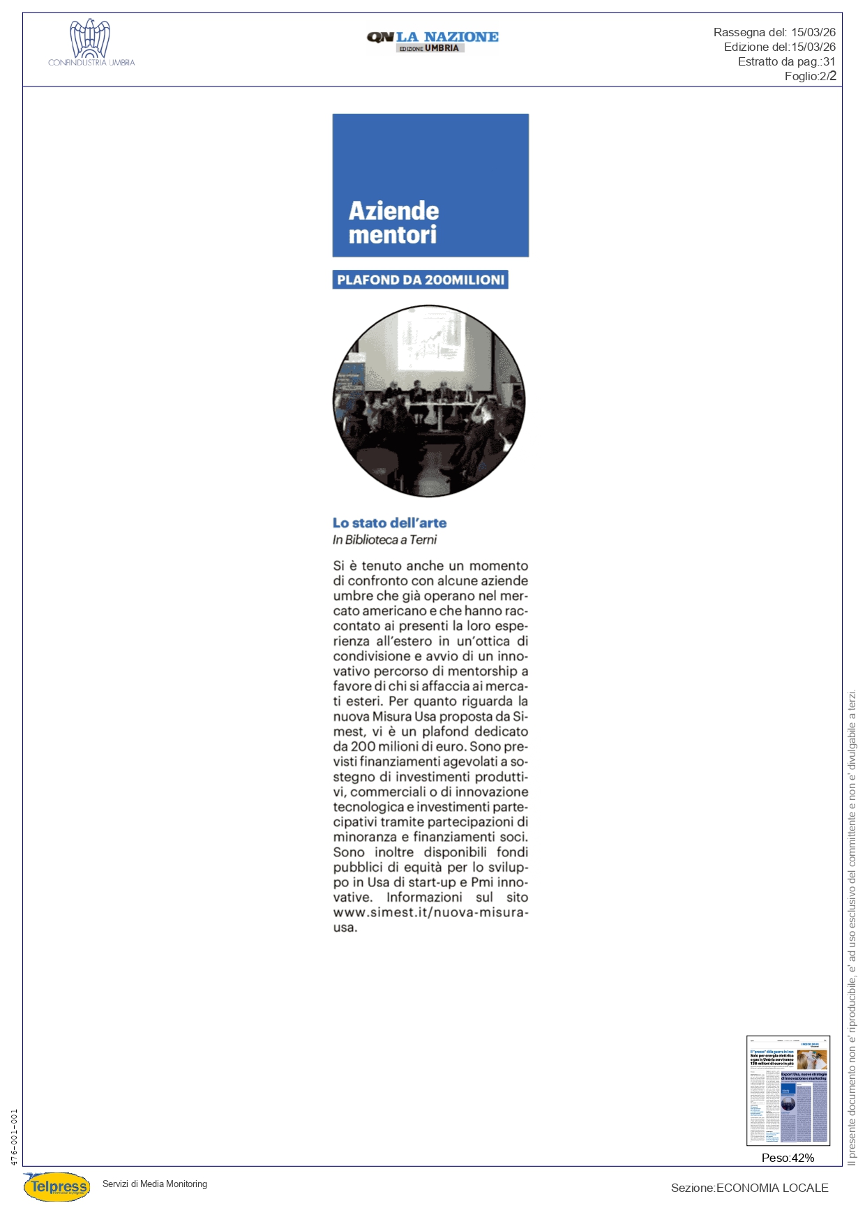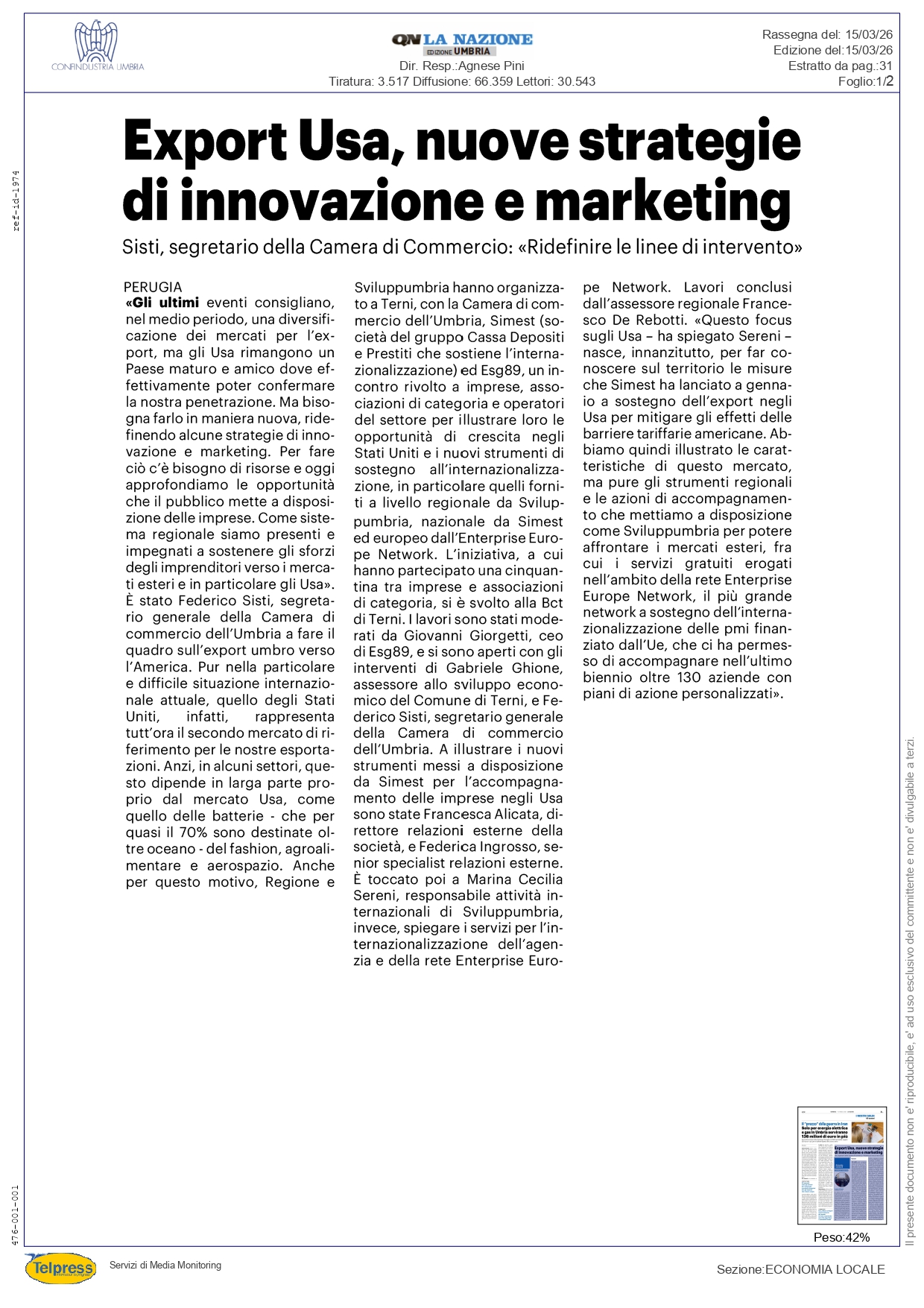 L’Umbria punta sugli Stati Uniti: presentato a Terni il piano Simest da 200 milioni per l’export