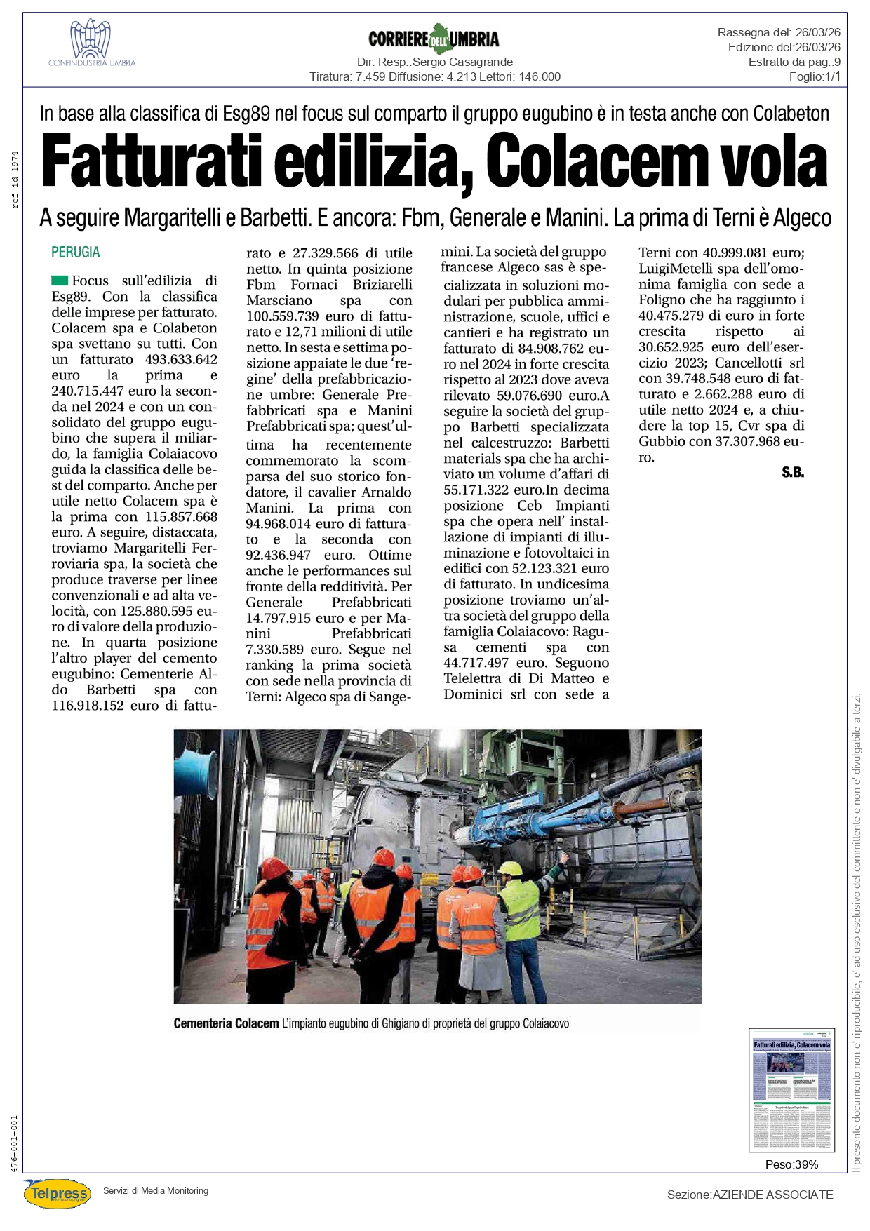 Fatturati edilizia, Colacem vola